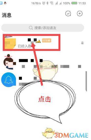 2、在打开的消息(xiaoxi)界面(mian)中,找(zhao)到想退出的学习群或者(or)学习讨论小组,点(dian)击一下(yixia)群。