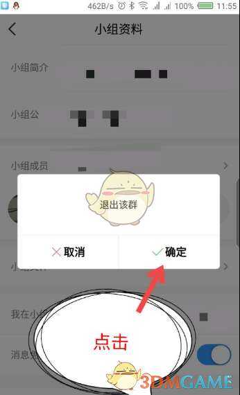 5、点(dian)击退出该群后,会弹出亿款退出群的确定(queding)窗口,点(dian)击右边的确定(queding)退出群。