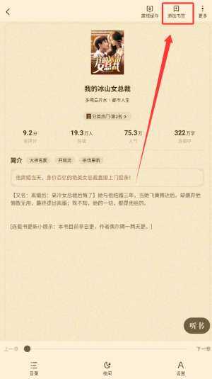 2、进入(jinru)书籍详情页面后,通常在右上角或底部会有一个“加入书架”或“收藏(shoucang)”按钮。