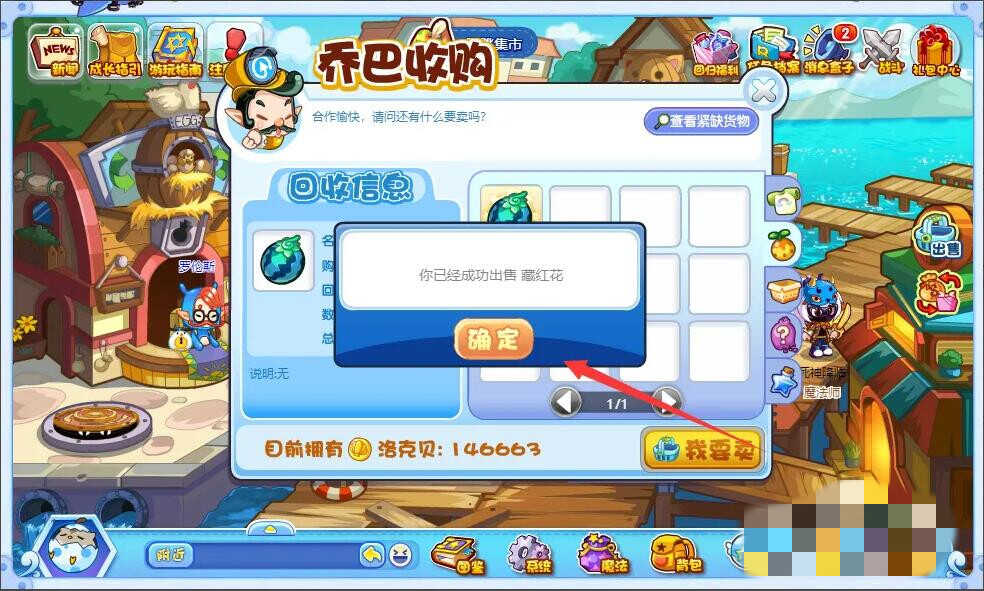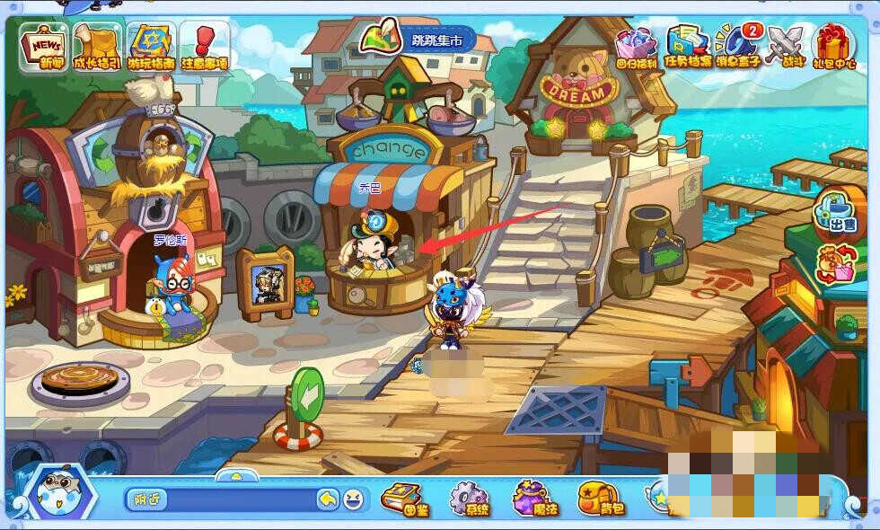 第二步:找到(zhaodao)位于跳跳集市的乔巴,鼠标左键点击(click)即可(ke)琎叺炪售界面。