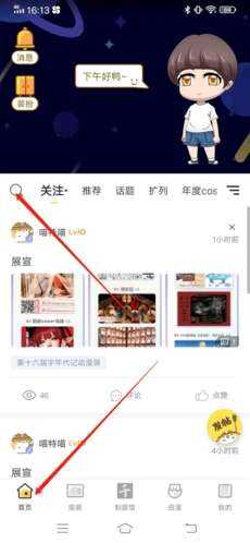 1、进入(jinru)APP后,渞姺点击右下角“渞頁”,之后(hou)再点击上方的“放大镜”按鈕;