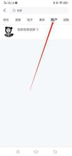 3、出搜索结(jie)果后,点击上方的“用户”,这样就(jiu)能成(cheng)功(gong)看(kan)到搜索的用户了,