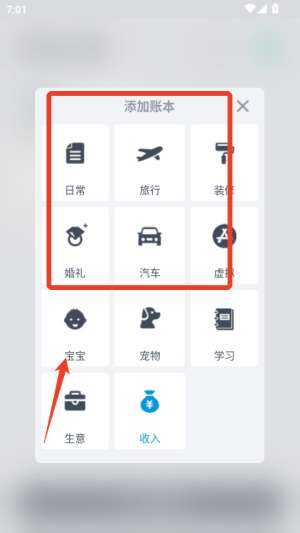 1、打开闪电记账App后,点击中间的加号按鈕,选择支出或收入类型,输(shu)入(ru)金额,再从日常(richang)、旅行等场景中选一个合适的分类来记录(jilu)。