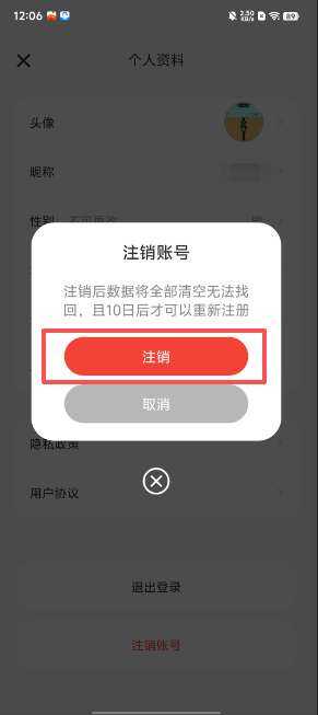 第四步:点击“注销账号”,找到(dao)页面上的“注销”