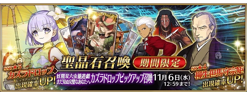 本次活动会开启2期卡池,一池实装五星AE阶从者糖果藤蔓,四星是柳生和红A双UP。
