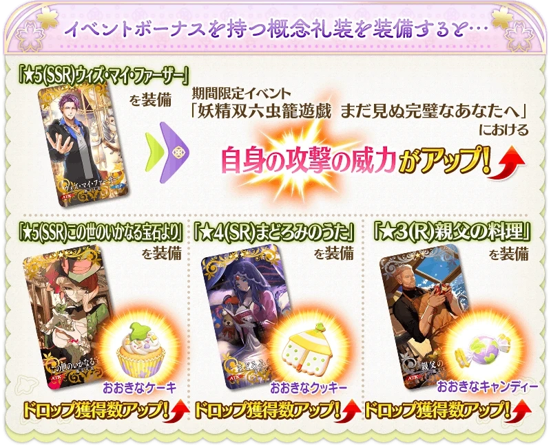 以上是本次活动的礼装加(jia)成,活动赠送礼装是攻击威力提升效果,卡池礼装对应3种商店材(cai)料奖励。