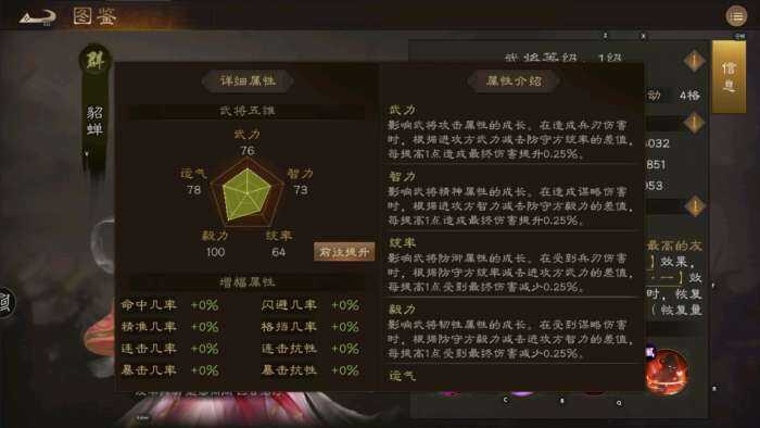 新三国志曹操传群雄貂蝉玩法一览从五维看,武力值属于良,智力属于良,统率决定防御属于一般,毅力低决定法防属于游戏独一档,新三国志曹操传群雄貂蝉玩法一览运气值决定了貂蝉的原生暴击率一般,接下来大家可以跟本站一起看看哦。