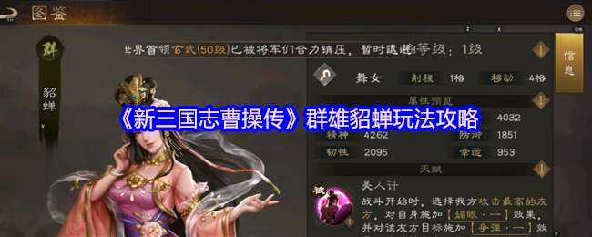 新三国志曹操传群雄貂蝉玩法一览-新三国志曹操传
