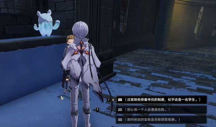 首先,你需要打开冰湖城东区的地图,看看上面有个标记,那个地方就是任务的起点,找到之后就去找西奥,和他对话。对话时,选择第一个选项【注意(Notice)他穿着考究的制服,似乎还是一名学(xue)生(sheng)】,这样能让你的才智数值提高(gao)。