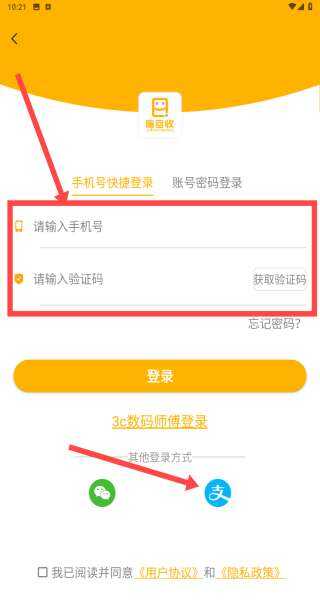 嗨回收师傅端app使用渠道:关于在嗨回收登录界面,可选用手机号快捷登录,输入手机号获取验证码;也能通过微信等其他方式登录,便捷又多样,支付宝授权登录时需准确填入手机号邮箱淘宝会员名形式的账号及对应密码,接下来就是相关的介绍。