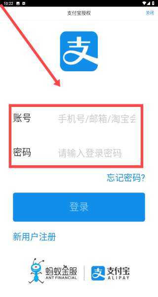 3、支付宝授权登录时需准确填入手(shou)机(ji)号邮箱淘宝会员名形式(xingshi)的账号(hao)及对(dui)应密码,完成输入后点击登录即可(jike)。