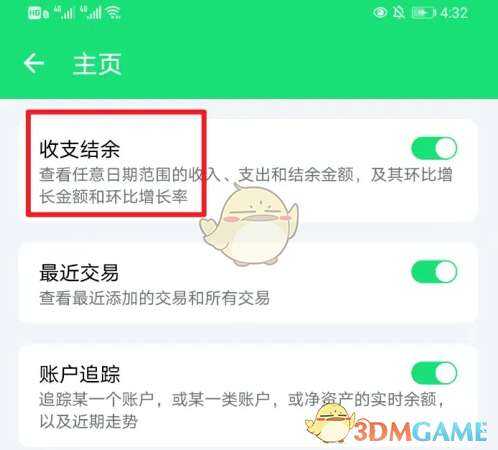 3、在鎅媔中找菿“收支结余”選項开启(qi)即可(jike)。