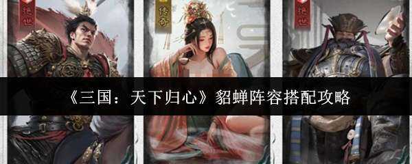 三国:天下归心貂蝉配队指南一览既没有特别高的伤害也扛不住多少伤害,三国天下归心貂蝉阵容搭配就给大家介绍,只要跟对了队友,她的控制和辅助就能发挥出大作用,所以这篇攻略就从这些不同的需求出发,把貂蝉常见的几套阵容搭配逻辑讲清楚,不管你是哪种玩法、哪种投入程度,接下来就让我们一起了解一下吧。