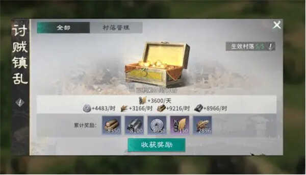 村落产出:当完成收复城池、剿灭叛军以后,即可获(huo)得(de)村落,作为主公们的食邑,可以源源不断的产出各种基础资源,资源累(lei)计上限为48小时,超过后不再累(lei)计,不要忘记每天领取。