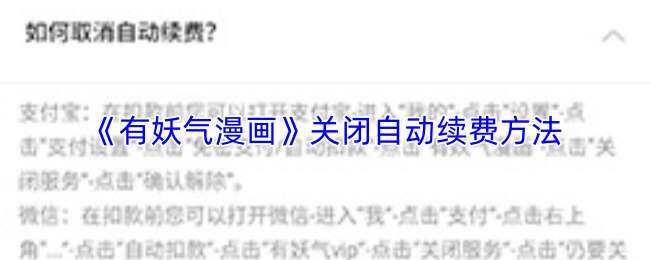 今天小编给大家带来有妖气漫画关闭自动续费渠道全部内容,更多文章相关内容,持续关注本站,希望大家喜欢。