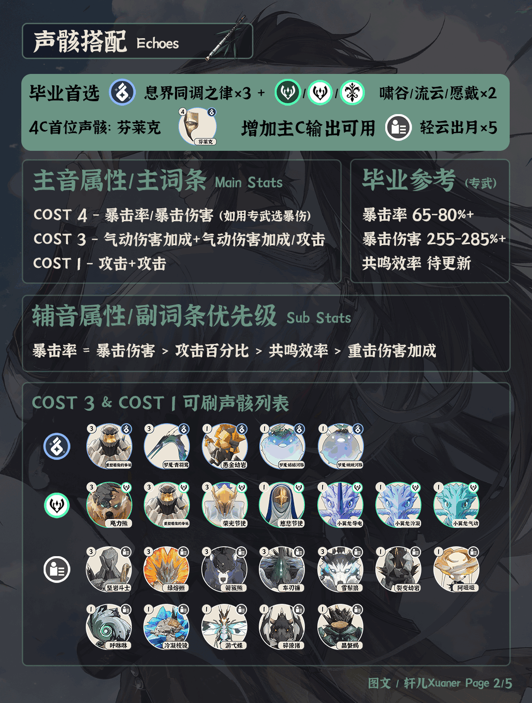 鸣潮仇远声骸推荐①仇远定位气动副C。