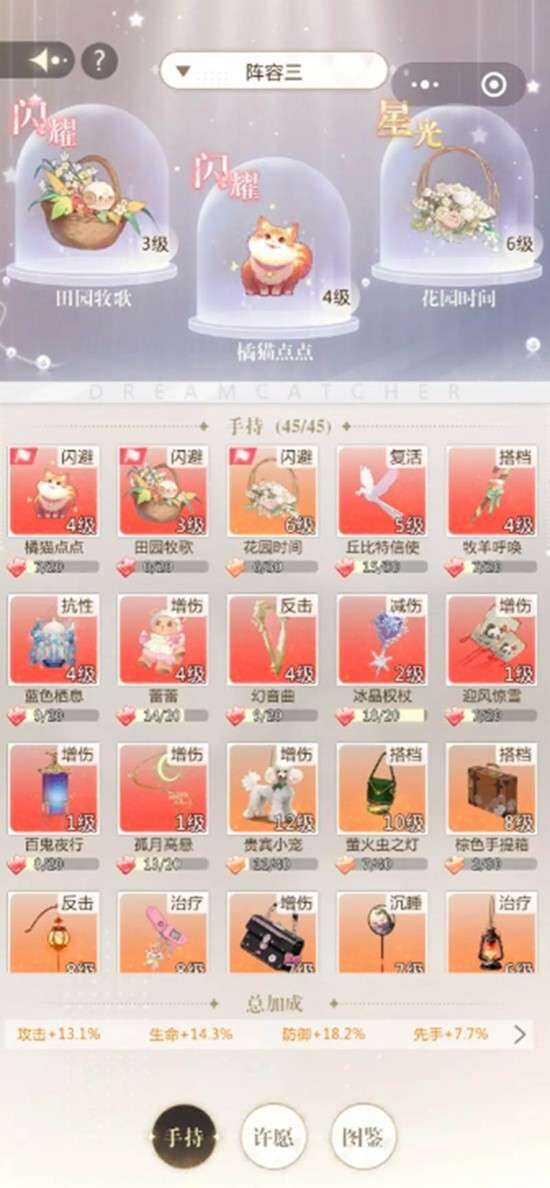 手持推荐选择高闪避率的田园牧歌、橘猫点点和埖圎时光。学院成员可以根据阵容(line-up)和入梦能(neng)量(liang)选择带治疗属性的队员,如果伤害不足就提高(tigao)增伤。这套阵容(line-up)一(yi)般(ban)需要3200万入梦能力,可以打出3739万伤害,对抗(duikang)效果(guo)相当(quite)理想。
