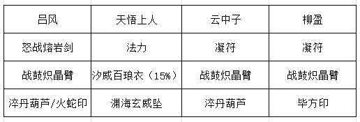 第六回合:云中子打出百转叠浪诀,吕风复制百转叠浪诀,天悟上人打出三清化水符,云中子打出三清化水符,天悟上人打出五行化水咒和断水龙威,吕风打出复制的百转叠浪诀,柳盈打出玄冰神破和玄冰九变,接着就可以输出了。