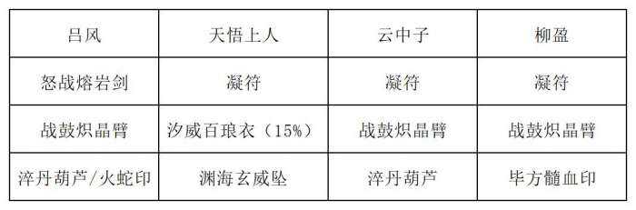 由于三张战意卡都是(doushi)先手,不知道是(shi)不(bu)是(shi)调过优先级,我打了四五次,战意卡不会在三清化水符前面出现,所以我们不用担心凝符会回收到战意卡,但是我们柳盈的化刃符不是先手,所以是一定不会回收化刃符的,吕风带凝符也是(Too)赌有一张战意卡能在他手上,如果求稳也可以带常规的怒战熔岩剑。另外由于战意卡是随机角色获取,所以以下打法不提及战意卡,有了(youliao)就打出就行了。