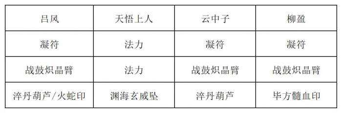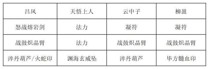 第一回合:云中子打出百转叠浪诀、三清化水符和玄冰化刃符,吕风复制玄冰化刃符并打出,柳盈打出玄冰神破,如果玄冰九变在化刃符上方,打出,否则不动。