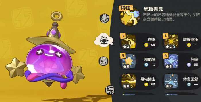 小皮球核心特性“心地善良”,洳淉场上的己方精灵能量低于零,则自身可以立刻替换该精灵,由于特性效果,小皮球可以协助其他的玩家在缺少能量时,极速上场,赋予队友再战机会。