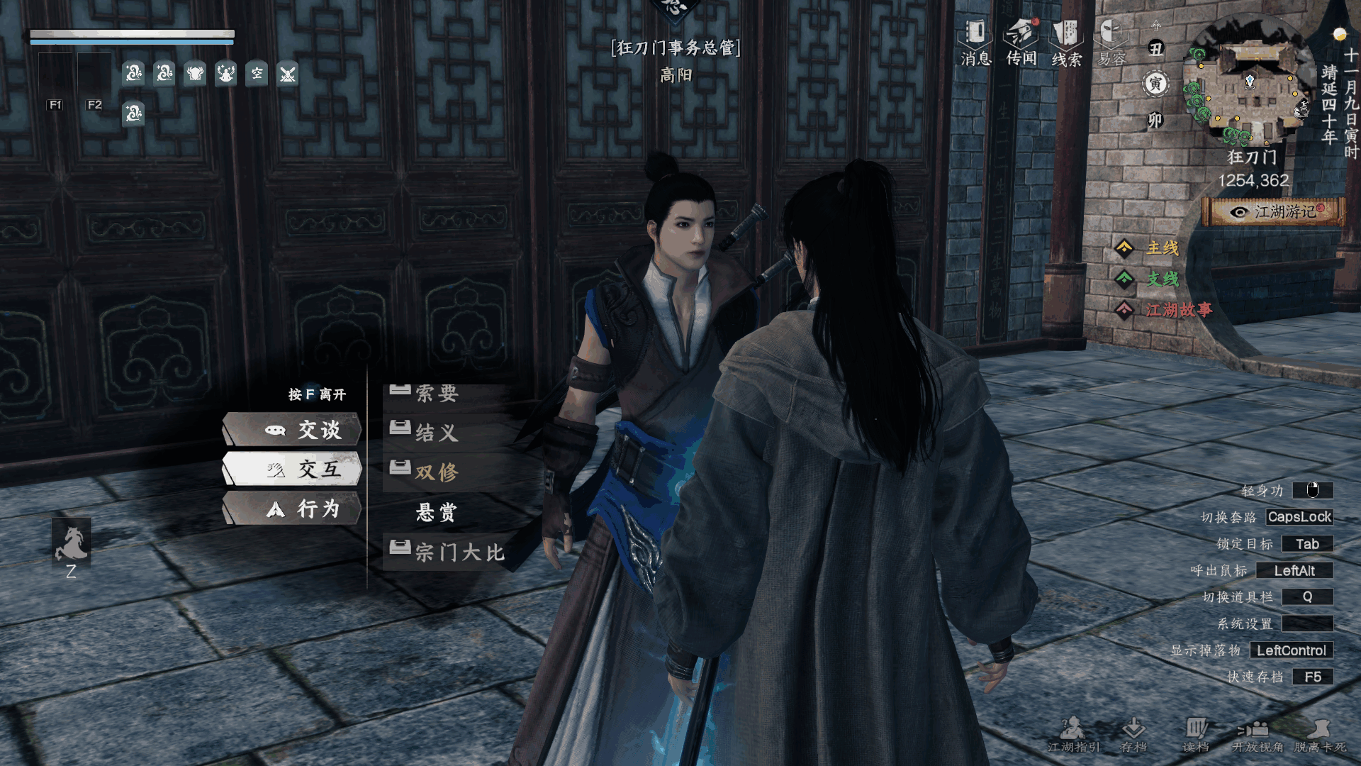 来到1254.362狂刀门事务总管接取悬赏任(ren)务(wu)完成后提交獲得门派好感度和狂刀德治令