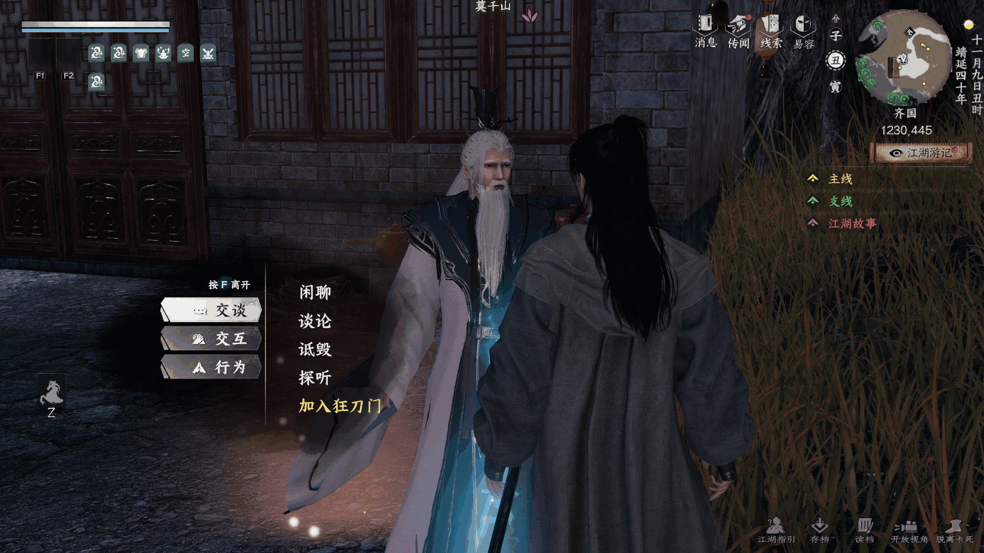 加入狂刀门需要(yao)来到1230.445交谈莫千山加入狂刀门后再次对话触发劇情