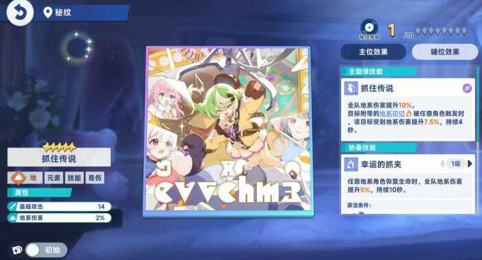 在挑选时,各(ge)位(wei)需根据自己所用主力队的元(yuan)素(su),来筛选对应秘纹作为奖励,比如各(ge)位(wei)正在(zai)用土系队,那么就选土系秘纹即可。这是因为同元(yuan)素(su)秘纹对可为队伍提供的加(jia)成比较多,而且所能选的七张秘纹都有(duyou)可提高对应元(yuan)素(su)伤害的效果,若是为队伍筛选了与她们元(yuan)素(su)不同(tong)的秘纹,那么在装配时该秘纹为队伍提供的加(jia)成效果就会差上非常多。尤其在虹彩秘纹比较难获得的情况下,挑选同元(yuan)素(su)秘纹为队伍立刻带来提升可令各(ge)位(wei)获得极大(da)的收益。
