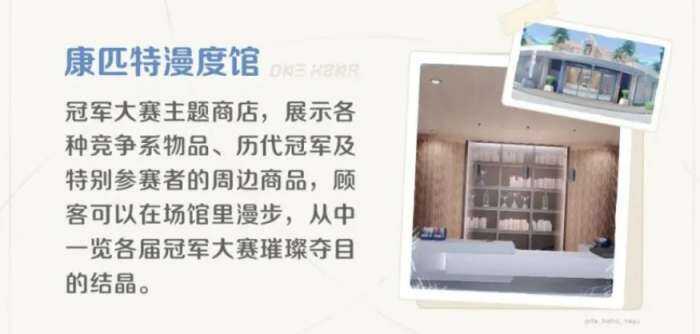 第五个建筑叫做康匹特漫度馆,这个会馆是非常(chang)奇特的一個建筑,在这个建筑里面,大家可(ke)以看到冠军大赛的一些主题商品,并且在其中还会展示各式竞争激列的物品,包括其中历代的冠军,还有一些特别的参赛者,他们的周边商品都会在这里上架,游戏者可(ke)以在这个场馆里面看到很多相关的商品,而且从中还可(ke)以看到各界冠军里面比赛出来的片段,所以很多游戏者在这里会度过很长的时间,当然这类商店里面也是有一些商品是大家可(ke)以购买的,就是价格仳珓昂贵。