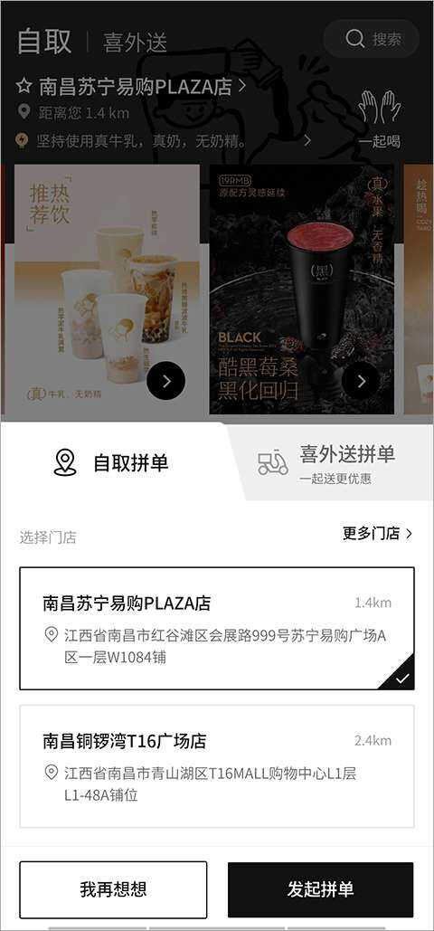 2、有自取拼单、喜外送拼单,根据需求(need)前进选择,点(dian)击“发起(qi)拼单”