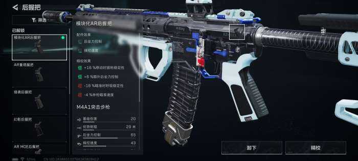 枪管、前握把、后握把、托腮板全(quan)部(bu)向右拉满,能够进一步提(ti)升枪械的稳定性的前提下,能使在实战以及靶场测试中有着更好的表现。