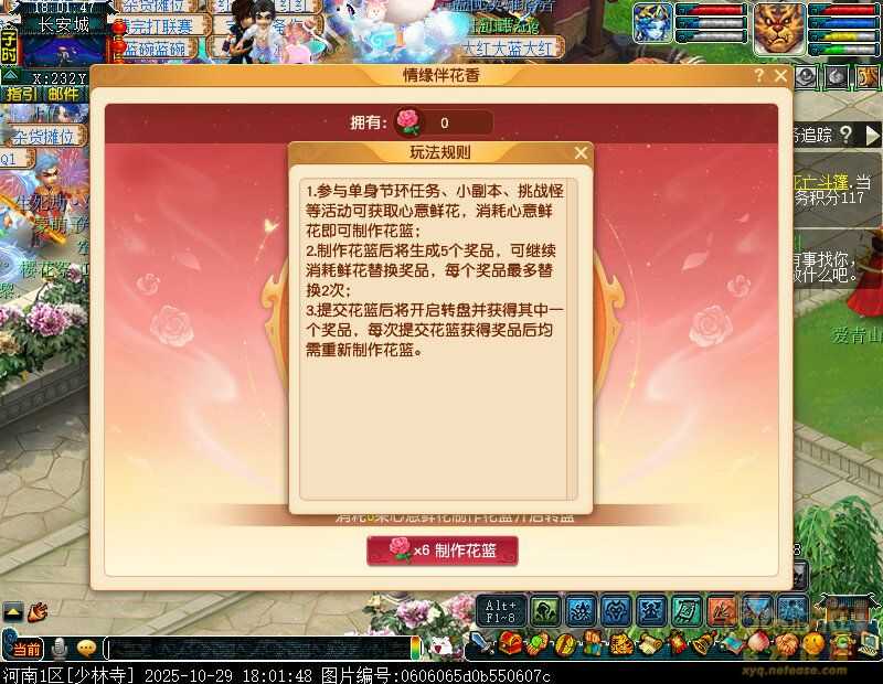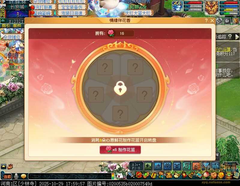玩(wan)家在情缘仙子处,消耗(consume)6个心意鲜花制作花篮(開啟转盘抽(chou)奖)