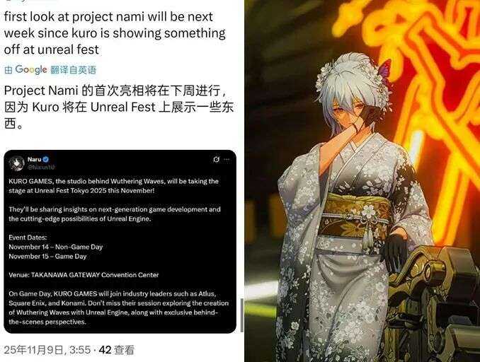 Unreal Fest既有口碑,又有含金量,当有新游戏上线,或者有重大技术出现,许多厂商都会选择在这些展会上进行预热。此次外网推文说库洛将(jiang)在该展会上有大动作,所以推子的关注度较高,分享与猜疑内容热度很大(very big),甚至有人预测说,“库洛不一定是想Nami的亮相,因(yin)为原文没有提到Nami,可能是鸣潮的新PV。”