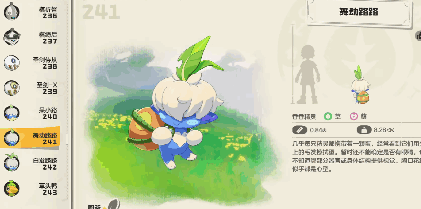 并且,舞动路路还可以学习种子弹、猛烈撞击、休息回复、音波弹、碰爪、种皮爆裂等技能,任何草属性的技能,舞动路路都是可以得心应手的。