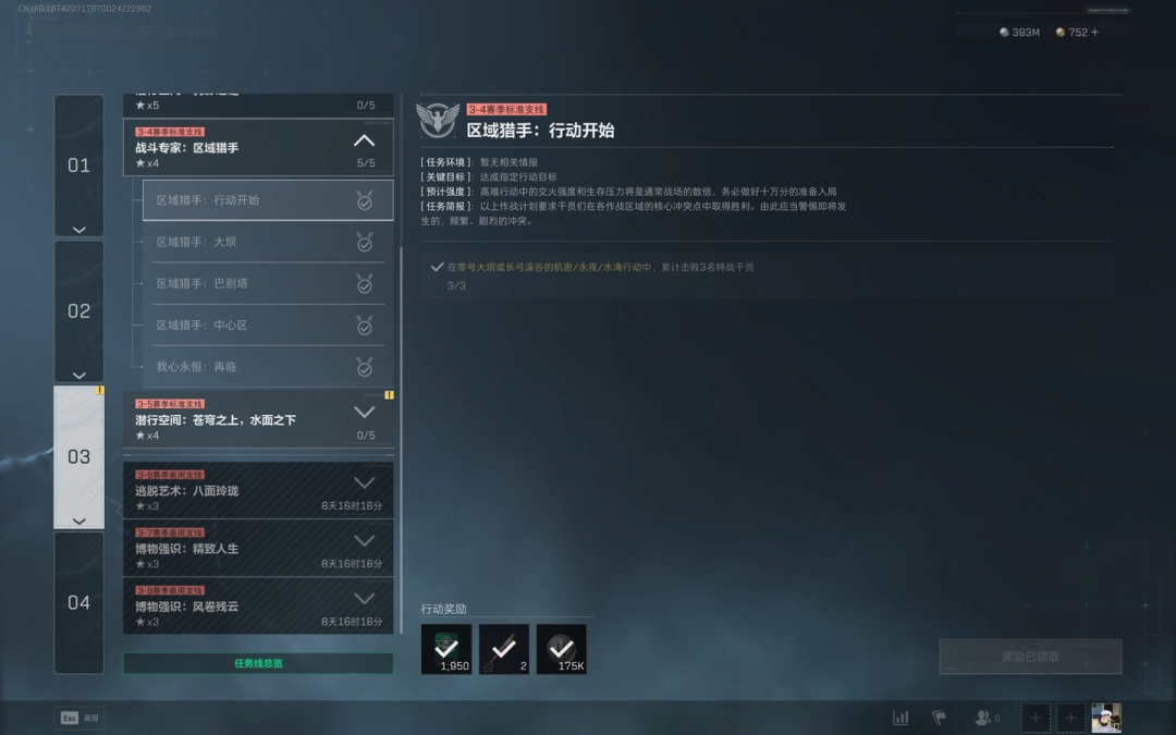 2、任务名稱:区域猎手:行动开始