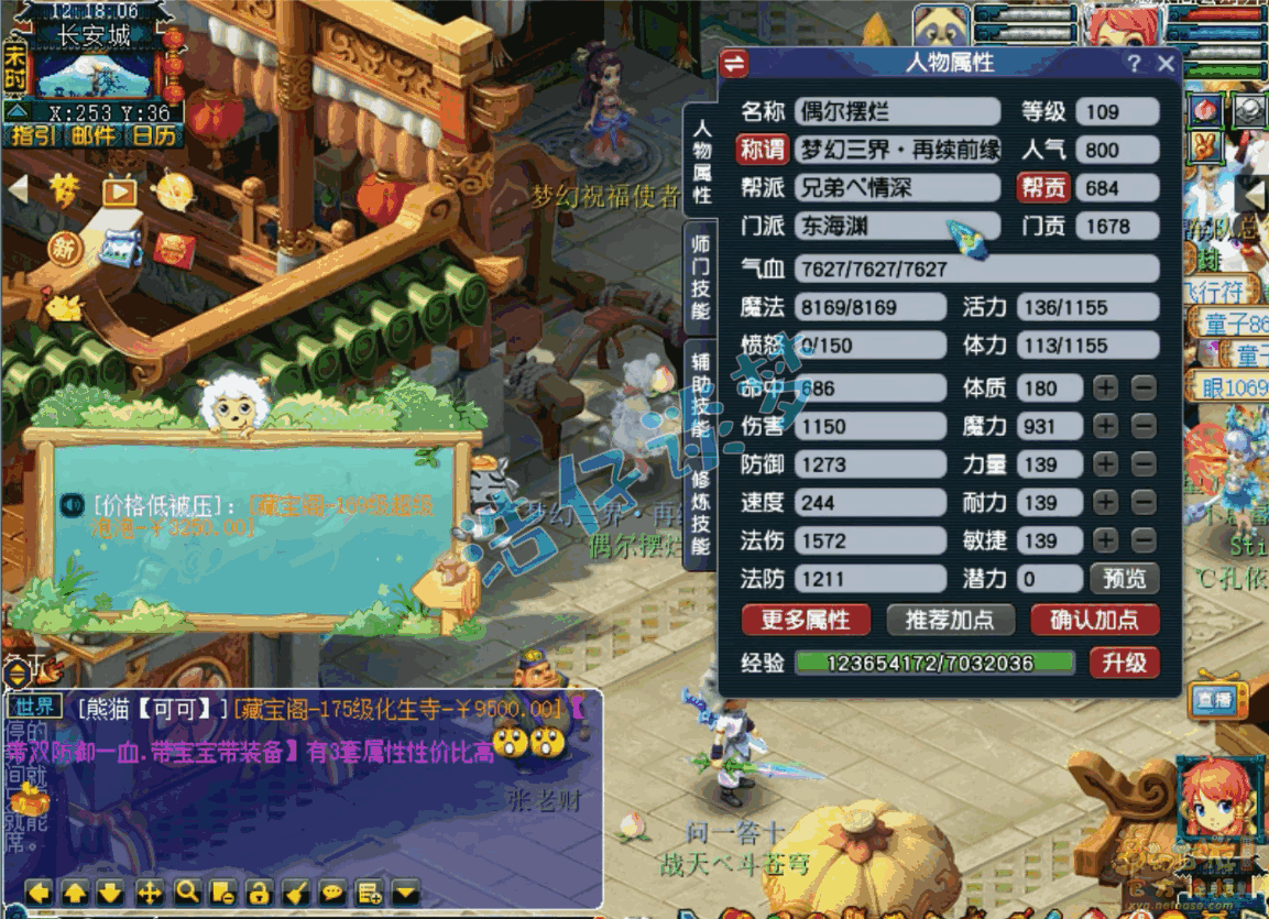 109级东海渊没打临时符没穿鞋子的面板属性,打符带神器(qi)之后(after)法伤能达到1700多,刷任务完全(completely)足(zu)够了!