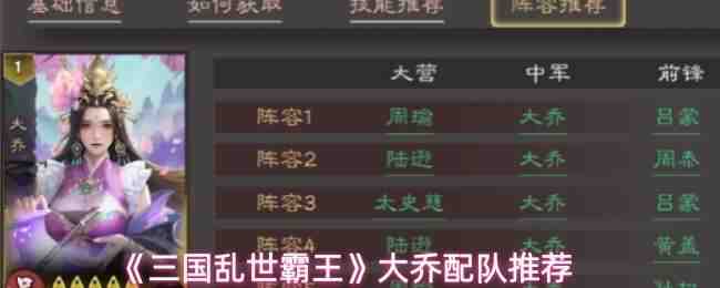 三国乱世霸王大乔配队推荐-三国乱世霸王