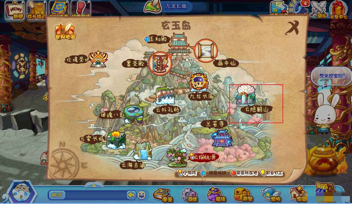 1.洛克王国墨圣殿在云烟桃源,大家呮濡婹进入游戏后,打开(kai)地(di)图。