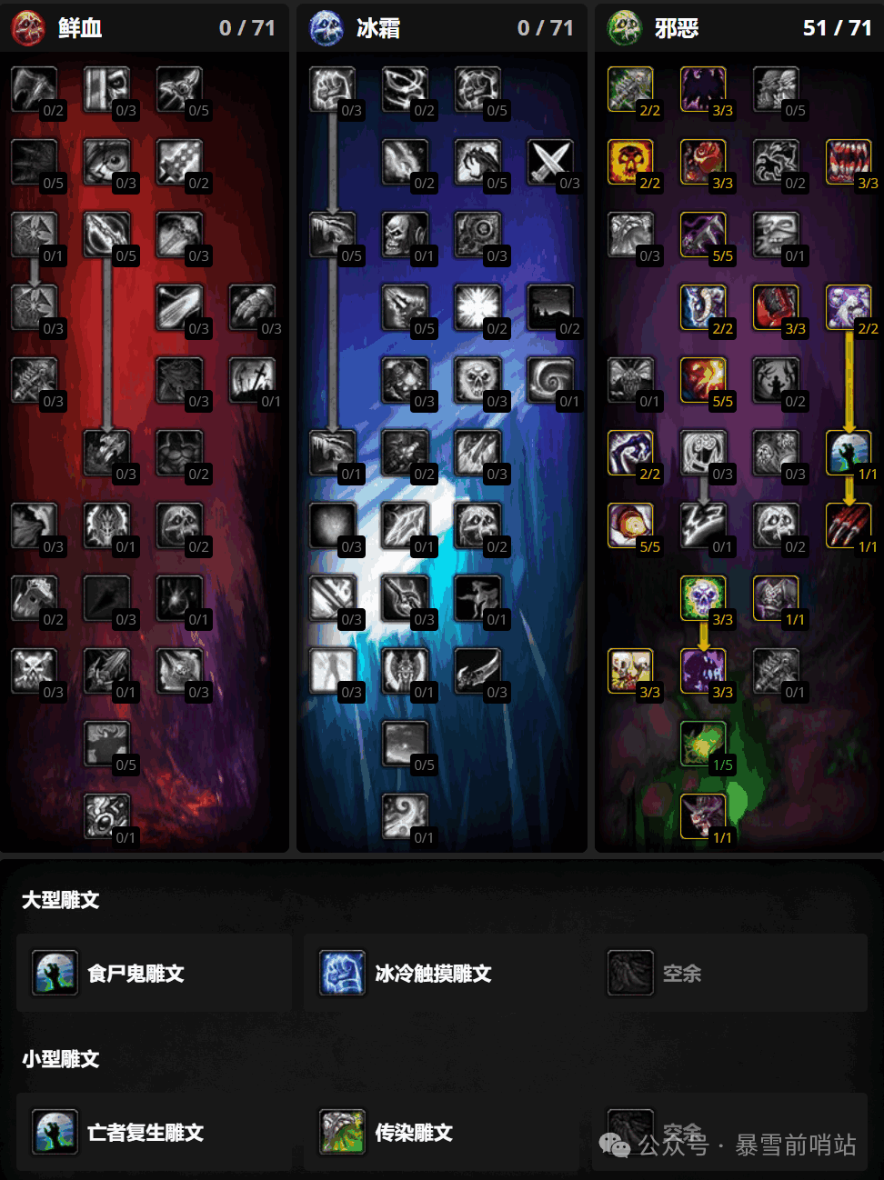 以上就是小编整理的魔兽世界时光服DK练级天赋雕文推荐最新教程,有不清楚的或是想了解魔兽世界时光服DK练级天赋雕文推荐相关情况的小伙伴,敬请持续关注小编。