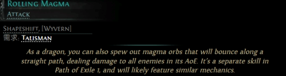 作为飞龙,喷射出直线弹跳的岩浆球,对范围内敌人造成伤害(harm)。