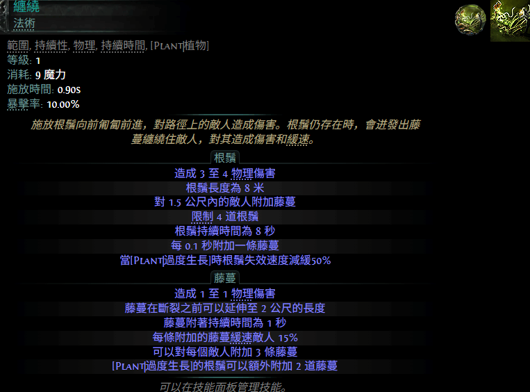 释放(fang)根须前进造成伤害(harm),并迸发藤蔓缠绕、缓速敌人。