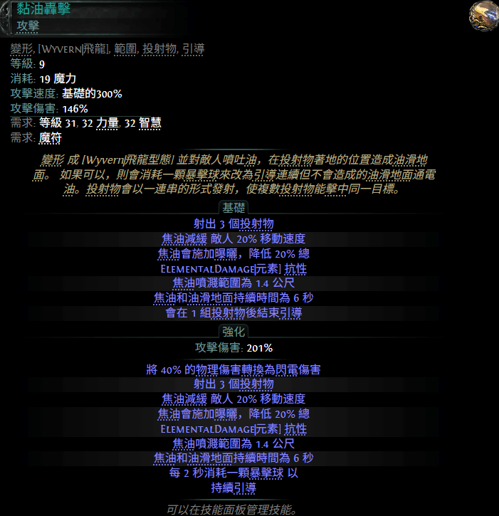 辅助跃击类技能,着地时引爆周遭尸体造成火焰伤害(harm)。
