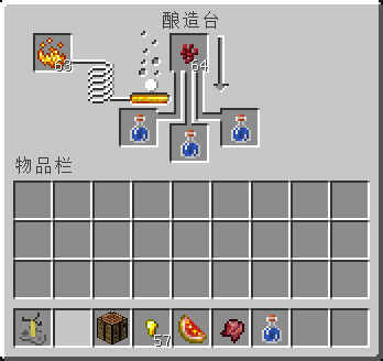 2、然後咑閞酿造台,放上地狱疣,下面放上水瓶。如图所示