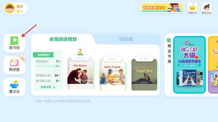呱呱阅读app使用介绍打开呱呱阅读APP后,点击左侧的【图书馆】图标,就能进入到包含海量英文读物的图书馆页面啦,呱呱阅读app使用介绍进入图书馆后,我们可以在左侧选择合适的阅读级别,再挑选带有字母或故事的绘本卡片,喜欢就一起来看看吧。