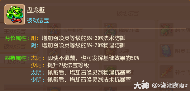 法宝效果:增加佩戴者召唤灵的粅理和法术防御