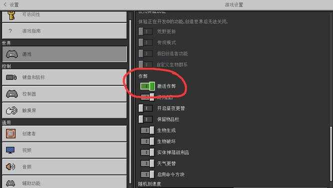 2,第二种方法(method)首先要去蔎置中开启激活(jihuo)作弊按钮。