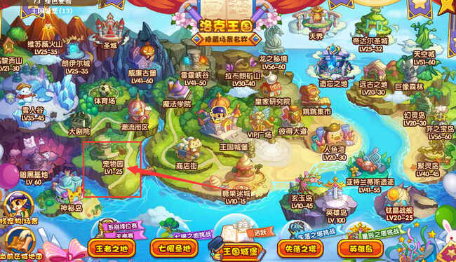 洛克王国幽影山谷如何去2026在“王国城堡”这个地图的界面,打开地图;进入地图选择界面后,玩家选择宠物园这个地图;在宠物园这个地图点击地图右侧的宠物园字样;然后就会出现宠物园的具体分布地图,精彩内容在下面等你来看。