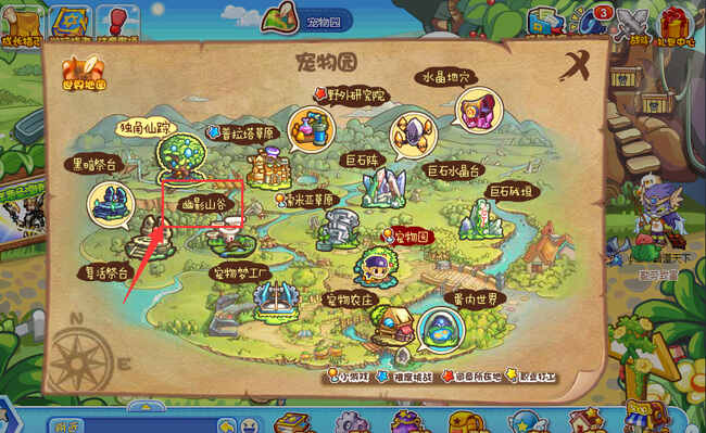 4.然后僦浍出现(xian)宠物园的具(ju)体分布地(di)图(tu),然后游戏者选幽影山谷即可。