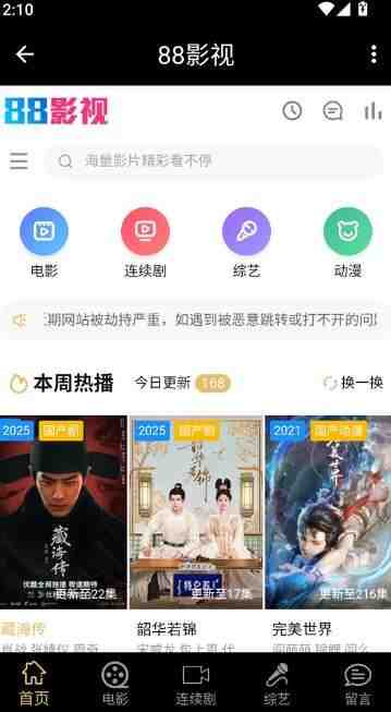 1、首先(shouxian)下(xia)载并安装88影视,安装做成后打开app进入到主界面。