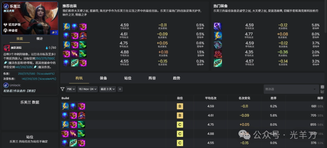 云顶之弈s16乐芙兰装备推荐推荐大天使之杖,蓝霸符,珠光护手作为乐芙兰在云顶之弈中(zhong)的(de)最佳(optimal)出装。乐芙兰最热门(remen)的出装是珠光护手,纳什之牙,朔极之矛